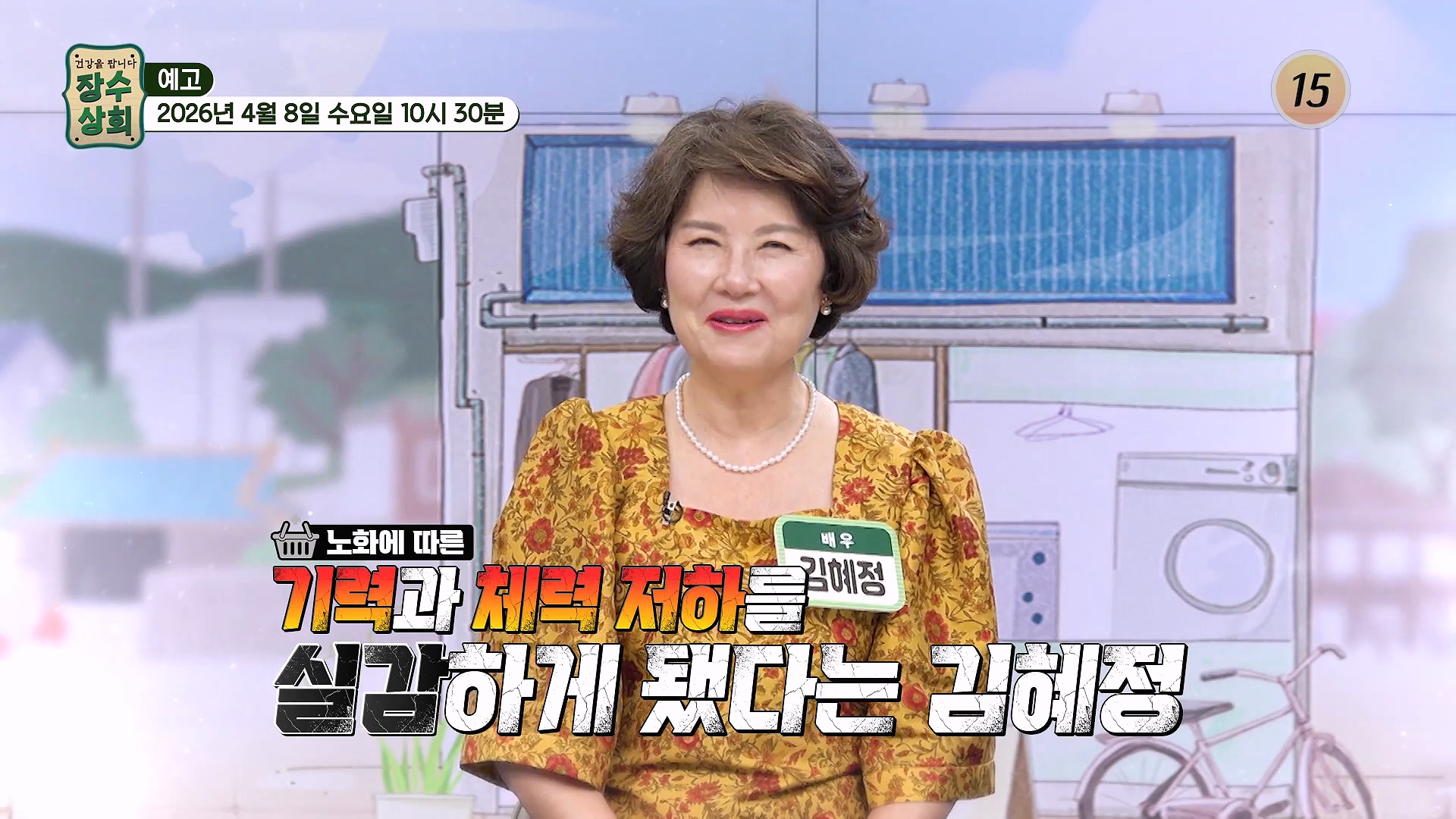 장수상회 프로그램 홈 스크랩 Loadingbar 로그인 후서비스 이용해 주세요. 로그인 지금은 시청할 수 없는 영상입니다.양해 부탁드립니다. 새로고침 이동통신망(5G/LTE 등)으로 재생 시데이터 통화료가 발생할 수 있습니다. 확인 ! 영상시청안내 설치/이용 중이신 AdBlock 솔루션으로 인해동영상 재생이 차단되었습니다. TV조선의 광고 노출을 허용해 주세요. 15 15세 미만은 시청할 수 없습니다. 장수상회 방송일 2024.09.11 장수상회 97회 스크랩 공유하기 공유 닫기 카카오톡 페이스북 트위터 URL 복사 최완정의 독소 다이어트법에 대해 알아본다. 더보기 무제한 이용권 월 6,600원 재생목록 클립 댓글 정보 총 170개 최신회차 과거회차 많이보는회차 전체년도 2026 2025 2024 2023 2022 검색 장수상회 장수상회 100회 체내 산성화를 막는 비법에 대해 알아본다. 방송일 2024.10.02(수) 1시간 36분 장수상회 장수상회 99회 뇌 건강 비법에 대해 알아본다. 방송일 2024.09.25(수) 1시간 36분 장수상회 장수상회 98회 고지혈증 극복에 도움 준 건강법에 대해 알아본다. 방송일 2024.09.18(수) 1시간 36분 장수상회 시청중 장수상회 97회 최완정의 독소 다이어트법에 대해 알아본다. 방송일 2024.09.11(수) 1시간 36분 장수상회 장수상회 96회 장미화의 폐 건강법에 대해 알아본다. 방송일 2024.09.04(수) 1시간 36분 장수상회 장수상회 95회 혈관 건강 미인으로 거듭나는 김혜연의 비법에 대해 알아본다. 방송일 2024.08.28(수) 1시간 36분 장수상회 장수상회 94회 관절 미인 되는 비법에 대해 알아본다. 방송일 2024.08.21(수) 1시간 36분 장수상회 장수상회 93회 동안 박수림의 저속노화 비법에 대해 알아본다. 방송일 2024.08.14(수) 1시간 36분 장수상회 장수상회 92회 배우 서권순의 노화 예방법에 대해 알아본다. 방송일 2024.08.07(수) 1시간 36분 장수상회 장수상회 91회 이승신의 다이어트 성공 비법에 대해 알아본다. 방송일 2024.07.31(수) 1시간 36분 검색 결과가 없습니다. 검색 초기화 처음으로 이전 8 9 10 11 12 13 14 15 16 17 다음 마지막으로 총 596개 최신회차 과거회차 많이보는회차 전체회차 170화 169화 168화 167화 166화 165화 164화 163화 162화 161화 160화 159화 158화 157화 156화 155화 154화 153화 152화 151화 150화 149화 148화 147화 146화 145화 144화 143화 142화 141화 140화 139화 138화 137화 136화 135화 134화 133화 132화 131화 130화 129화 128화 127화 126화 125화 124화 123화 122화 121화 120화 119화 118화 117화 116화 115화 114화 113화 112화 111화 110화 109화 108화 107화 106화 105화 104화 103화 102화 101화 100화 99화 98화 97화 96화 95화 94화 93화 92화 91화 90화 89화 88화 87화 86화 85화 84화 83화 82화 81화 80화 79화 78화 77화 76화 75화 74화 73화 72화 71화 70화 69화 68화 67화 66화 65화 64화 63화 62화 61화 60화 59화 58화 57화 56화 55화 54화 53화 52화 51화 50화 49화 48화 47화 46화 45화 44화 43화 42화 41화 40화 39화 38화 37화 36화 35화 34화 33화 32화 31화 30화 29화 28화 27화 26화 25화 24화 23화 22화 21화 20화 19화 18화 17화 16화 15화 14화 13화 12화 11화 10화 9화 8화 7화 6화 5화 4화 3화 2화 1화 검색 근육이 줄어들면💪 당뇨병 위험도가 함께 오른다고?😱 TV CHOSUN 260408 방송 170회 방송일 2026.04.08(수) ☕흑염소 진액☕ 당뇨 가족력 극복한 김혜정의 혈당 관리법😤 TV CHOSUN 260408 방송 170회 방송일 2026.04.08(수) 배우 김혜정의 특별한 건강 비결_장수상회 170회 예고 TV CHOSUN 260408 방송 170회 방송일 2026.04.08(수) 노년기 삶을 위협하는 대상포진💥 원인은 면역력 저하❓😨 TV CHOSUN 260401 방송 169회 방송일 2026.04.01(수) 🌟알부민🌟 최강 동안🎀 서권순의 기력 & 활력 충전 비법⚡ TV CHOSUN 260401 방송 169회 방송일 2026.04.01(수) 생명을 위협하는 뇌부종, 폐부종의 위험 신호_장수상회 169회 예고 TV CHOSUN 260401 방송 169회 방송일 2026.04.01(수) 🍋레몬자몽즙🍊 뇌종양 수술 후 불어난 체중 & 염증 관리 성공한 비결✨ TV CHOSUN 260325 방송 168회 방송일 2026.03.25(수) 식물처럼🌱 사람에게도 꼭 필요한 물‼ 하지만 대한민국은 수분 부족 국가😲❓ TV CHOSUN 260325 방송 168회 방송일 2026.03.25(수) 힘든 시간을 극복할 수 있었던 그녀의 건강 비법은?_장수상회 168회 예고 TV CHOSUN 260325 방송 168회 방송일 2026.03.25(수) 🤎볶음 맥문동 진액🤎 면역력 UP↑ 폐를 촉촉하게 해💧 염증은 OUT TV CHOSUN 260318 방송 167회 방송일 2026.03.18(수) 무서운 가족력😱 폐와 목소리에 더욱 예민한👀 장미화의 건강 사수 비결 TV CHOSUN 260318 방송 167회 방송일 2026.03.18(수) 촉촉한 목과 폐를 유지한 그녀의 건강 비법?_장수상회 167회 예고 TV CHOSUN 260318 방송 167회 방송일 2026.03.18(수) 체내 면역세포 저장고 💜알부민💜 챙기고 면역력과 생존율 끌어올려↗ TV CHOSUN 260311 방송 166회 방송일 2026.03.11(수) 무시무시한 뇌경색😈 혈관을 뚫는 수술 후🧬 찾아온 생사의 고비🤒 TV CHOSUN 260311 방송 166회 방송일 2026.03.11(수) 배우 사미자의 건강 비결은?_장수상회 166회 예고 TV CHOSUN 260311 방송 166회 방송일 2026.03.11(수) 🥬생식🥬 식이섬유의 황금비율✨ 포만감은 늘고💨 소화 흡수는 느리게🧘♀️ TV CHOSUN 260304 방송 165회 방송일 2026.03.04(수) 대장암 수술 후 2번의 전이에 항암치료까지😣 끝나지 않는 암과의 싸움💢 TV CHOSUN 260304 방송 165회 방송일 2026.03.04(수) 건강과 맛 