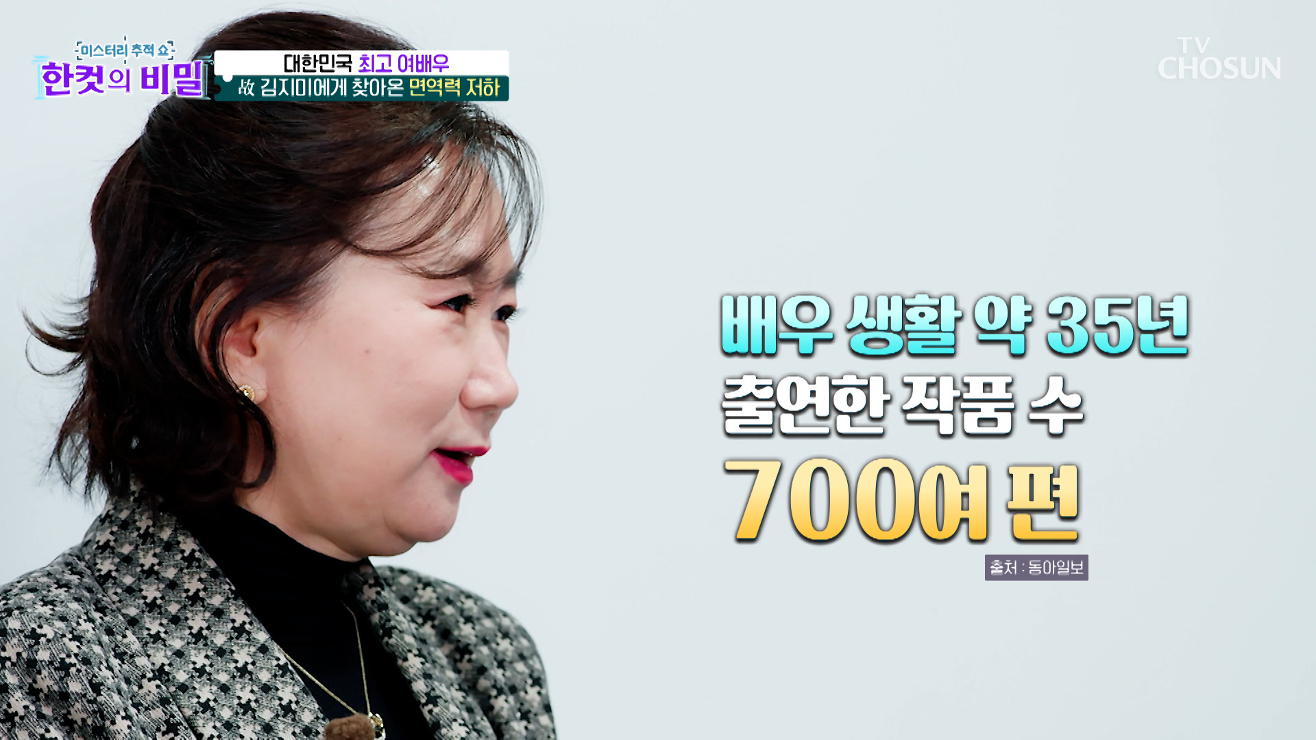 아름다운 미모와 심금을 울리는 연기력으로 수많은 명작을 남긴 배우 김지미! 대한민국 최고의 여배우 그 자체였던 그녀를 고통받게 한 수많은 질병의 원인은 바로 면역력 저하?배우 김지미가 고통을 안은 채 쓸쓸한 최후를 맞이할 수 밖에 없었던 이유, 면역력! 우리가 평소 미처 돌보지 못했던 면역력 챙기는 비법이 공개된다!