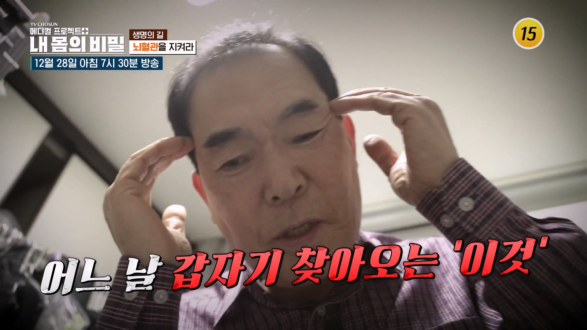 내 몸의 비밀 프로그램 홈 스크랩 Loadingbar 로그인 후서비스 이용해 주세요. 로그인 지금은 시청할 수 없는 영상입니다.양해 부탁드립니다. 새로고침 이동통신망(5G/LTE 등)으로 재생 시데이터 통화료가 발생할 수 있습니다. 확인 ! 영상시청안내 설치/이용 중이신 AdBlock 솔루션으로 인해동영상 재생이 차단되었습니다. TV조선의 광고 노출을 허용해 주세요. 15 15세 미만은 시청할 수 없습니다. 내 몸의 비밀 방송일 2025.12.28 내 몸의 비밀 4회 스크랩 공유하기 공유 닫기 카카오톡 페이스북 트위터 URL 복사 '생명의 길 뇌혈관을 지켜라'편이 공개된다. 더보기 무제한 이용권 월 6,600원 재생목록 클립 댓글 정보 총 4개 최신회차 과거회차 많이보는회차 전체년도 2025 검색 내 몸의 비밀 시청중 내 몸의 비밀 4회 '생명의 길 뇌혈관을 지켜라'편이 공개된다. 방송일 2025.12.28(일) 1시간 46분 내 몸의 비밀 내 몸의 비밀 3회 '노화의 종말 젊음, 그 끝을 다시 쓰다'편이 공개된다. 방송일 2025.12.14(일) 1시간 45분 내 몸의 비밀 내 몸의 비밀 2회 ‘기억의 종말! 치매를 막아라‘편이 공개된다. 방송일 2025.12.07(일) 1시간 46분 내 몸의 비밀 내 몸의 비밀 1회 ‘같은 나이, 다른 젊음! 노화 격차를 줄이는 방법‘편이 공개된다. 방송일 2025.11.02(일) 1시간 46분 검색 결과가 없습니다. 검색 초기화 총 12개 최신회차 과거회차 많이보는회차 전체회차 4화 3화 2화 1화 검색 💛대마종자유💛 혈관 속 기름때를 녹이고🧼 뇌경색 극복😆 TV CHOSUN 251228 방송 4회 방송일 2025.12.28(일) 편마비에 이어 사라지는 기억들🥺 뇌졸중 후유증으로 무너진 부부의 일상💥 TV CHOSUN 251228 방송 4회 방송일 2025.12.28(일) 메디컬 프로젝트 〈내 몸의 비밀〉 - 생명의 길, 뇌혈관을 지켜라_메디컬 프로젝트 내 몸의 비밀 4회 예고 TV CHOSUN 251228 방송 4회 방송일 2025.12.28(일) 🌟트리펩타이드 콜라겐🌟 노화 막고✋ 되찾은 피부 탄력😉 TV CHOSUN 251214 방송 3회 방송일 2025.12.14(일) 가속노화로 인해 탈모까지?!😨 모자👒 없이는 외출하기 힘들어하는 그녀 TV CHOSUN 251214 방송 3회 방송일 2025.12.14(일) 노화의 종말 / 젊음, 그 끝을 다시 쓰다_메디컬 프로젝트 내 몸의 비밀 3회 예고 TV CHOSUN 251214 방송 3회 방송일 2025.12.14(일) 💡포스파티딜세린💡 경도인지장애 극복한 그녀의 뇌 건강 지킴이😄 TV CHOSUN 251207 방송 2회 방송일 2025.12.07(일) 아무것도 기억하지 못하는 엄마를 간호하며 무너진 딸의 건강😣💥 TV CHOSUN 251107 방송 2회 방송일 2025.12.07(일) 기억의 종말, 치매로부터 뇌를 지켜라_메디컬 프로젝트 내 몸의 비밀 2회 예고 TV CHOSUN 251207 방송 2회 방송일 2025.12.07(일) 🌟트리펩타이드 콜라겐🌟 레티놀을 더해 주름 없는 동안 미모 사수👊 TV CHOSUN 251102 방송 1회 방송일 2025.11.02(일) 피부부터 건강까지 너무 다른 노화 속도⏳ 원인은 생활 습관 때문?🤔 TV CHOSUN 251102 방송 1회 방송일 2025.11.02(일) 노화 격차의 핵심 열쇠 몸속 콜라겐을 채워라!_메디컬 프로젝트 내 몸의 비밀 1회 예고 TV CHOSUN 251102 방송 1회 방송일 2025.11.02(일) 1 댓글 0 로그인 후 작성할 수 있습니다. 첫 번째 댓글을 남겨주세요. 신고하기 신고사유를 선택해주세요 신고 사유* 신고사유 선택 불법물 홍보 동일 내용의 게시글/댓글 반복(도배) 특정인 대상의 비방/욕설 음란성 또는 청소년에게 부적합한 내용 서비스 취지(성격)에 맞지 않음 명예훼손 관련 게시물 저작권 관련 게시물 기타 확인 편성 정보 TV 조선 일요일 오전 7시 30분 프로그램 소개 '생명의 길 뇌혈관을 지켜라'편이 공개된다. 제작진 PD 임현재, 연출 윤여훈, 작가 이혜지, 박언정, 남다영, 이용권 구매